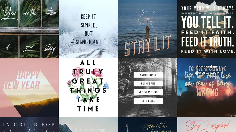 Word Swag, akıllı telefonunuzun rahatlığında şık sosyal medya grafikleri oluşturmayı kolaylaştırırSosyal medya grafiklerinizi hareket halindeyken düzenlemeyi ve yayınlamayı tercih ediyorsanız, Word Swag harika bir seçenektir. Bu basit ama etkili uygulamayı kullanarak, doğrudan telefonunuzdan resimlerinize şık metinler ekleyebilirsiniz, seçtiğiniz kanalınıza gönderilmeye hazır.Uygulama içinden yüz binlerce ücretsiz stok görsel arasından seçim yapın veya isterseniz kendinizinkini yükleyin. Ardından metninizi ekleyin veya Word Swag kitaplığından önceden ayarlanmış bir stil seçin. İOS için 4,99 ABD doları ve Android için 3,99 ABD dolarıdır.