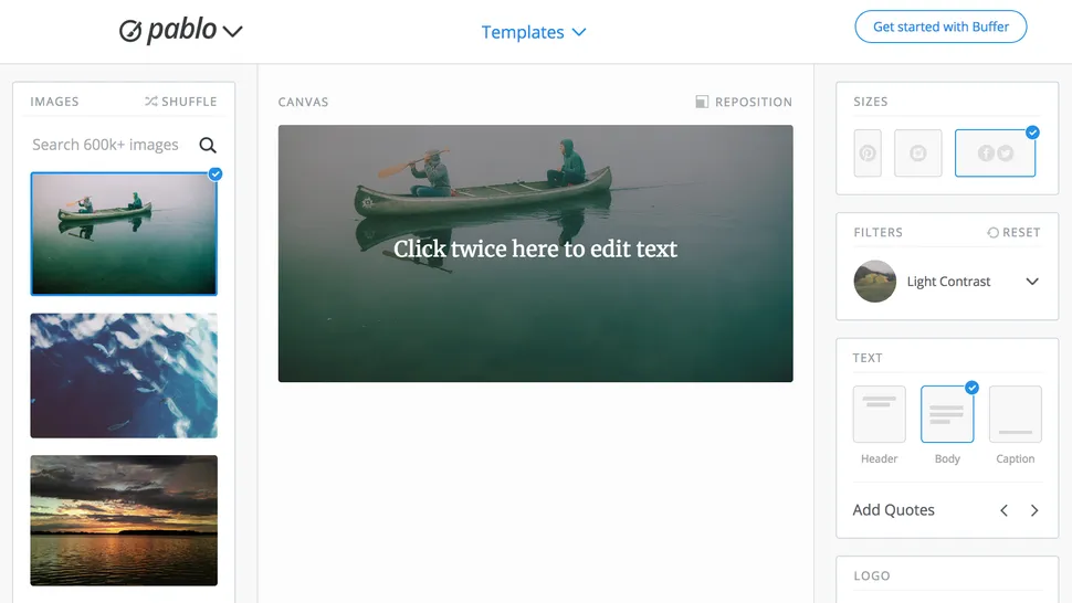 10 milyondan fazla kullanıcısı olan Canva, sosyal grafikler oluşturmak için en popüler araçlardan biridir.Dünya çapında 10 milyondan fazla kullanıcısı olan Canva , zahmetsizce sosyal grafikler oluşturmak için başvurulacak bir araçtır. Binlerce şablon ve görsel varlığın yanı sıra düzinelerce yazı tipi ücretsiz olarak parmaklarınızın ucunda – bu, kullanıcı başına aylık 9,95 ABD dolarına abone olursanız yüzbinlere kadar uzanır.Canva'nın basit sürükle ve bırak arayüzüne yeni başlayanlar için erişilebilir, ancak tasarıma dikkat ederek minimum çabayla bazı profesyonel kalitede varlıklar oluşturabilirsiniz. Elbette, aracın popülaritesi, en popüler şablonları şablon gibi görünmelerini önlemek için özelleştirmek için biraz daha fazla çalışmanız gerekebileceği anlamına gelir.Twitter, Instagram, Facebook ve Pinterest dahil olmak üzere çeşitli platformlar için önceden ayarlanmış boyutlar yerleşiktir ve ayrıca blog gönderileri ve diğer kullanımlar için özel boyutlarla da çalışabilirsiniz.